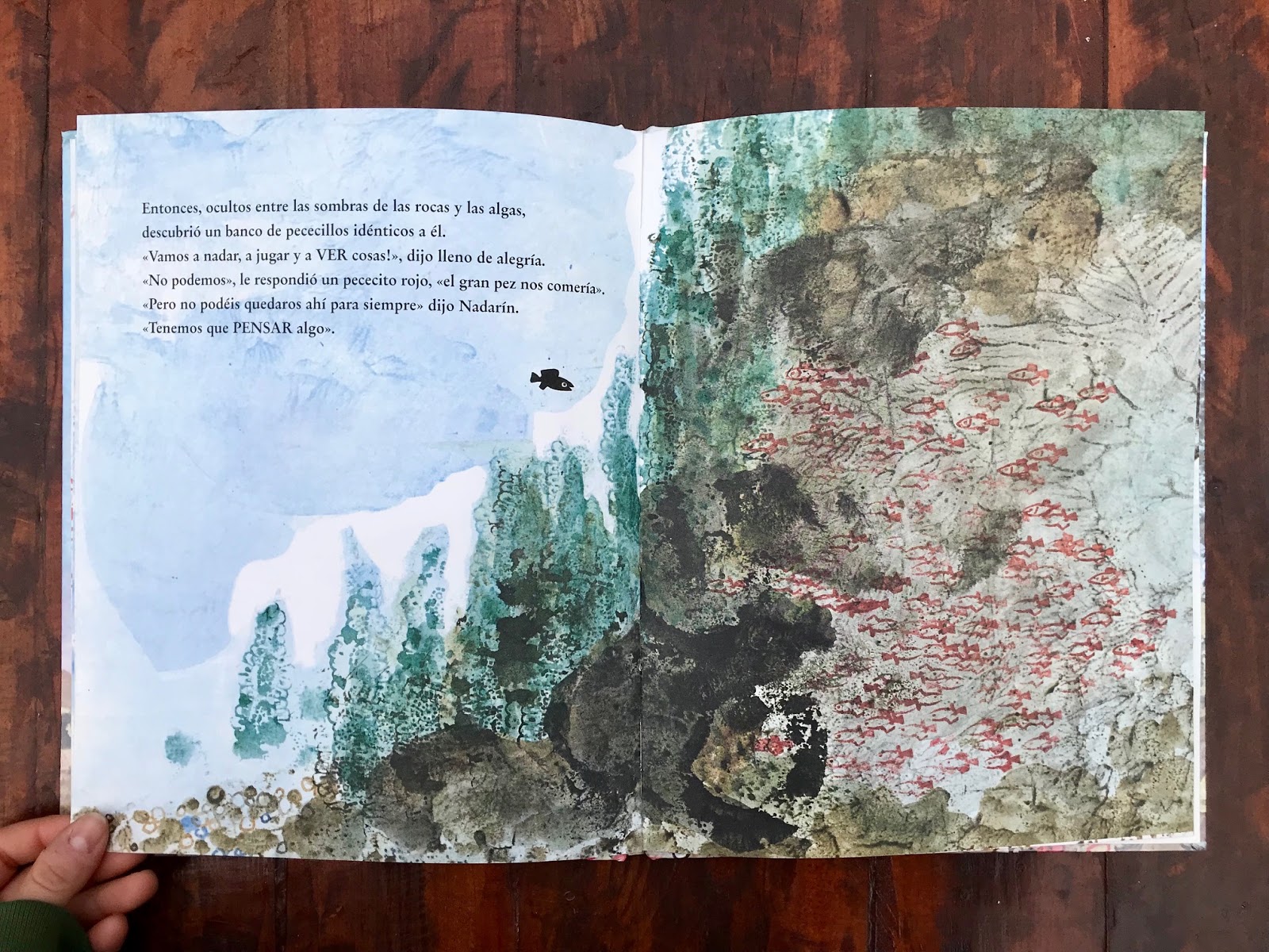 "Nadarín vive feliz y despreocupado en su banco de pequeños peces rojos, en un rincón cualquiera del mar. Aunque él no es igual que el resto de sus hermanos: es de color negro y nada mucho más rápido que cualquier otro. Un día, un gran atún hambriento les ataca y solo él consigue huir. Pronto vencerá al miedo y descubrirá un mar lleno de hermosas criaturas: medusas, anguilas, langostas, anémonas... y estos aprendizajes le permitirán ayudar a los demás a cambiar la manera de ver el mundo."